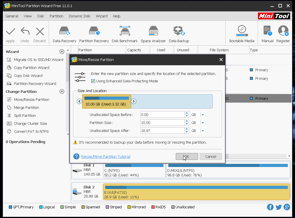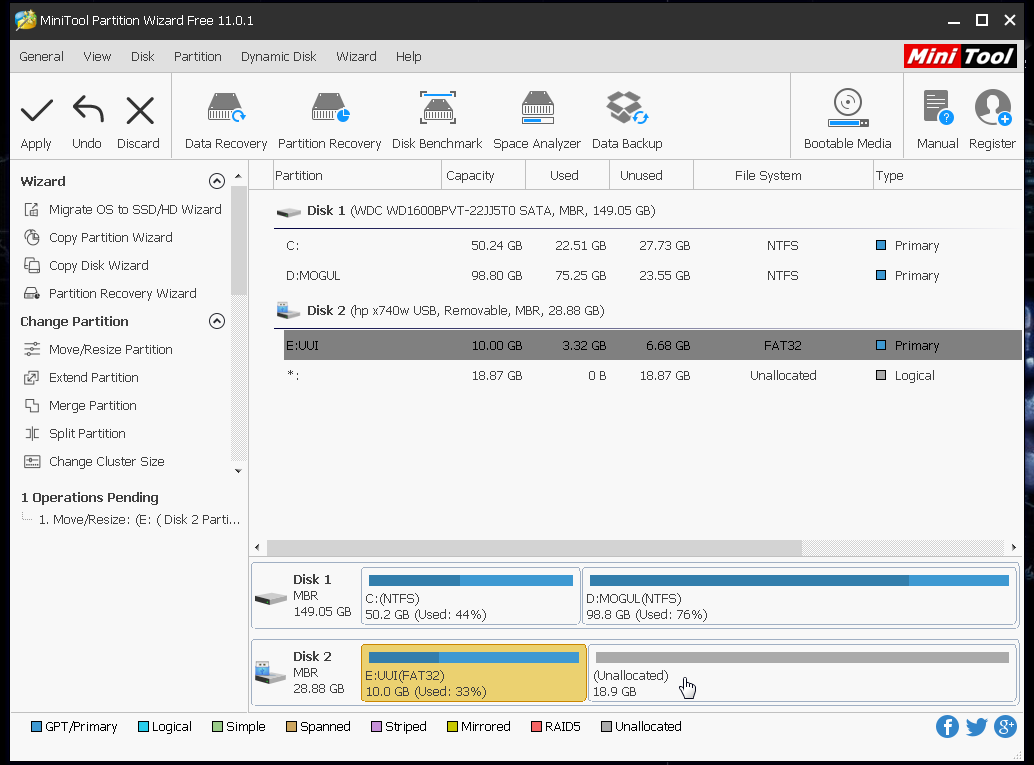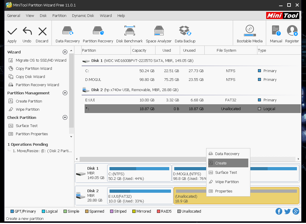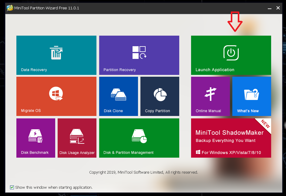 Open the Mini tool partition wizard and run.