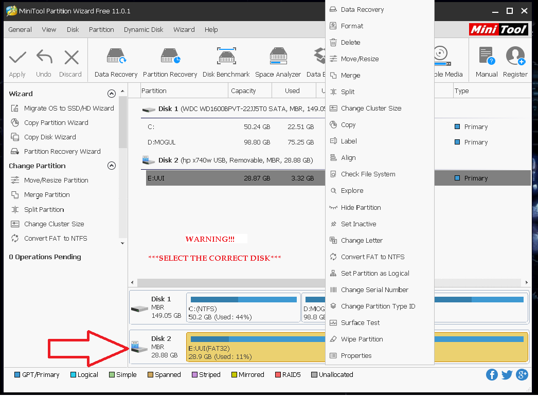 Then download the Mini tool partition wizard (here).